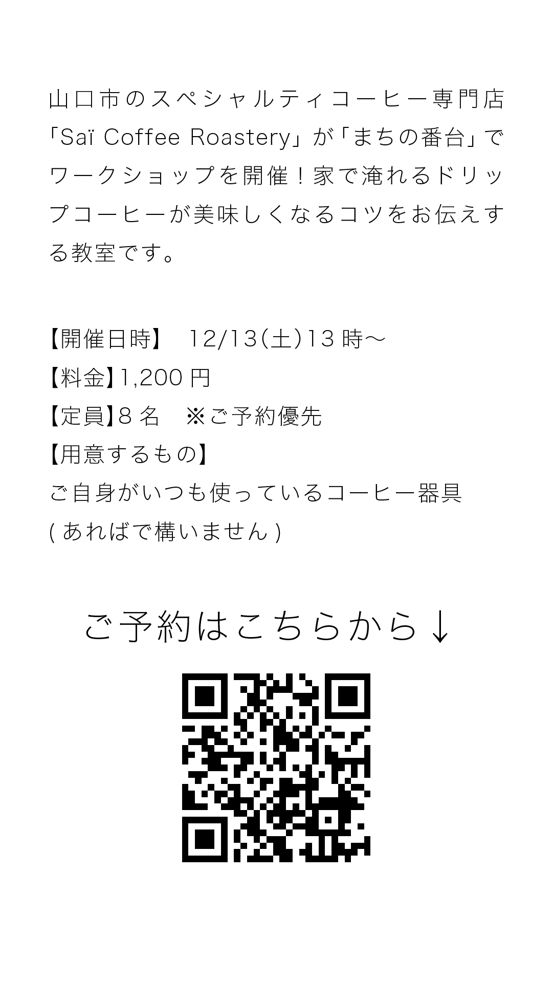 山口市のスペシャルティコーヒー専門店 「Saï Coffee Roastery」 が「まちの番台」でワークショップを開催!