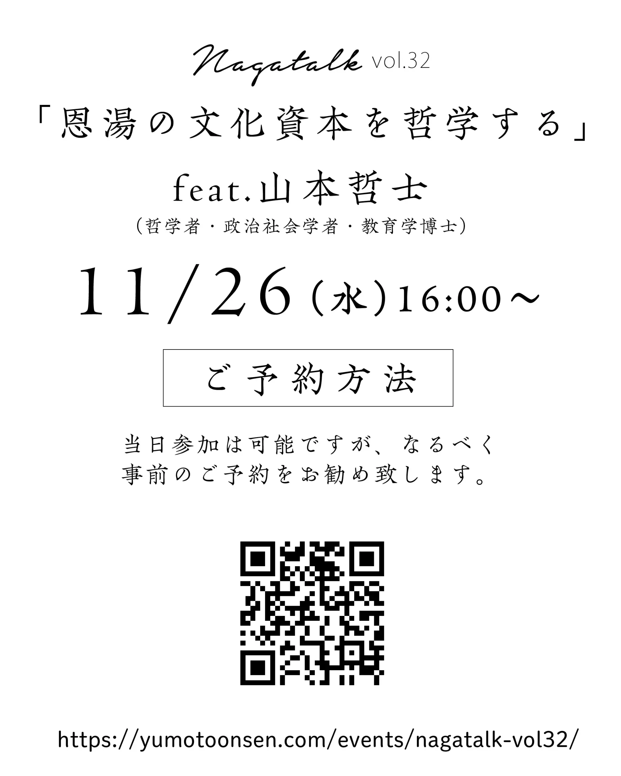 11/26開催!ながトークvol.32 哲学者・山本哲士さんが語る「恩湯の文化資本を哲学する」