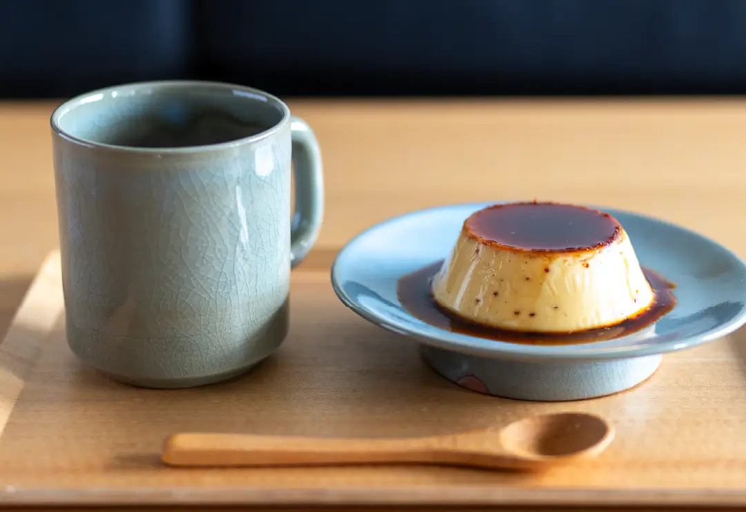 カフェの人気は、店長がつくる自家製ケーキ。ハンドドリップのコーヒーやお抹茶と一緒にゆっくりと楽しむことができます。