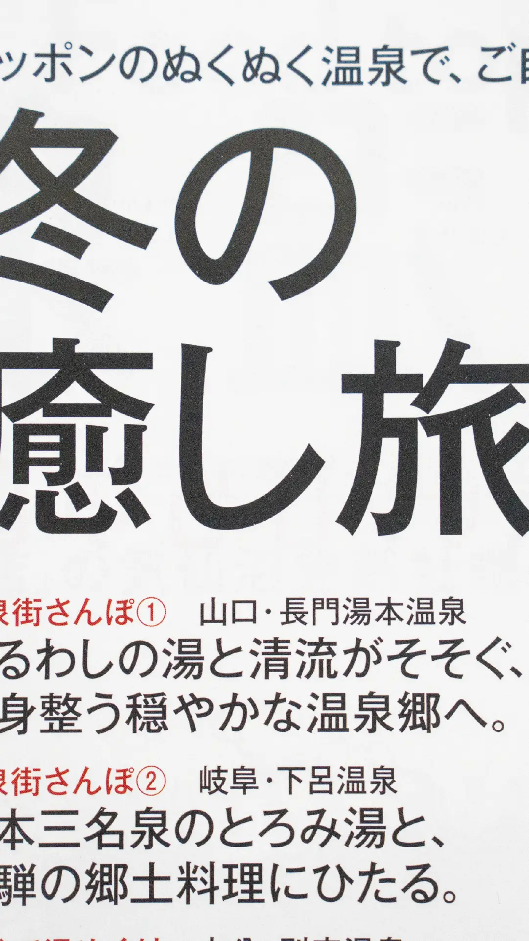 別府温泉や下呂温泉などの有名温泉地が並ぶ中、長門湯本温泉は「温泉街さんぽ1」としてトップバッターで登場。 リノベーションを経て生まれ変わった街並みや 冬ならではの温泉街の楽しみ方が、 ananらしい素敵な写真とともに掲載されています。