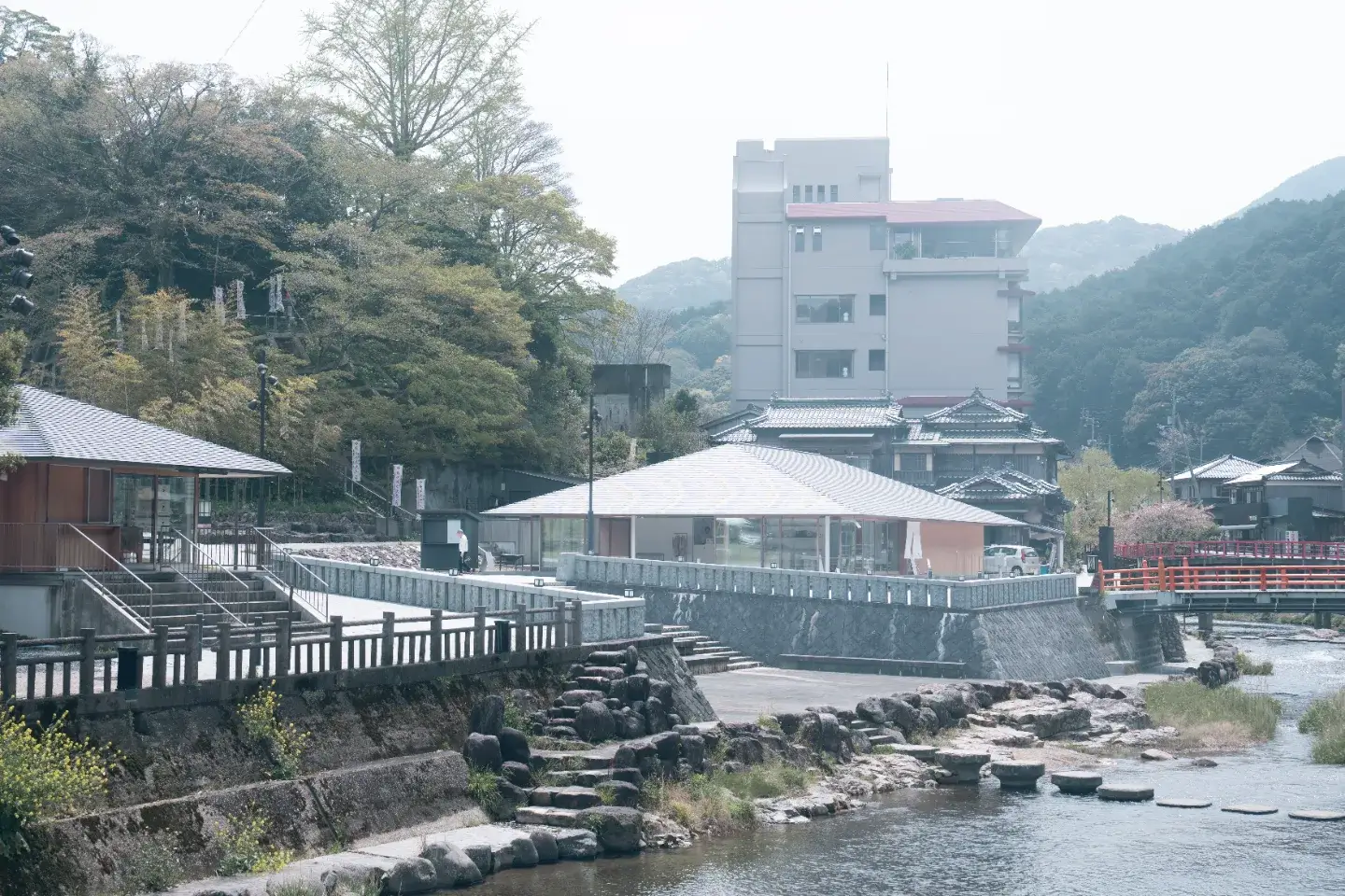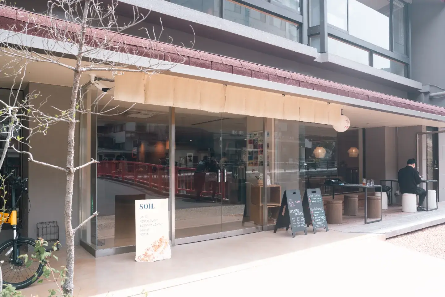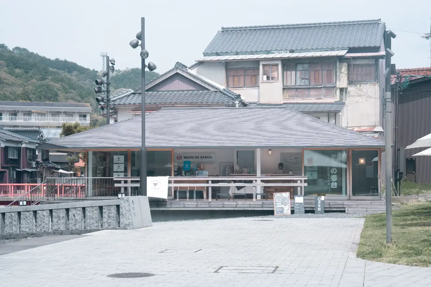 音信川沿いにある星野リゾート 界 長門に併設されたカフェスタンド。