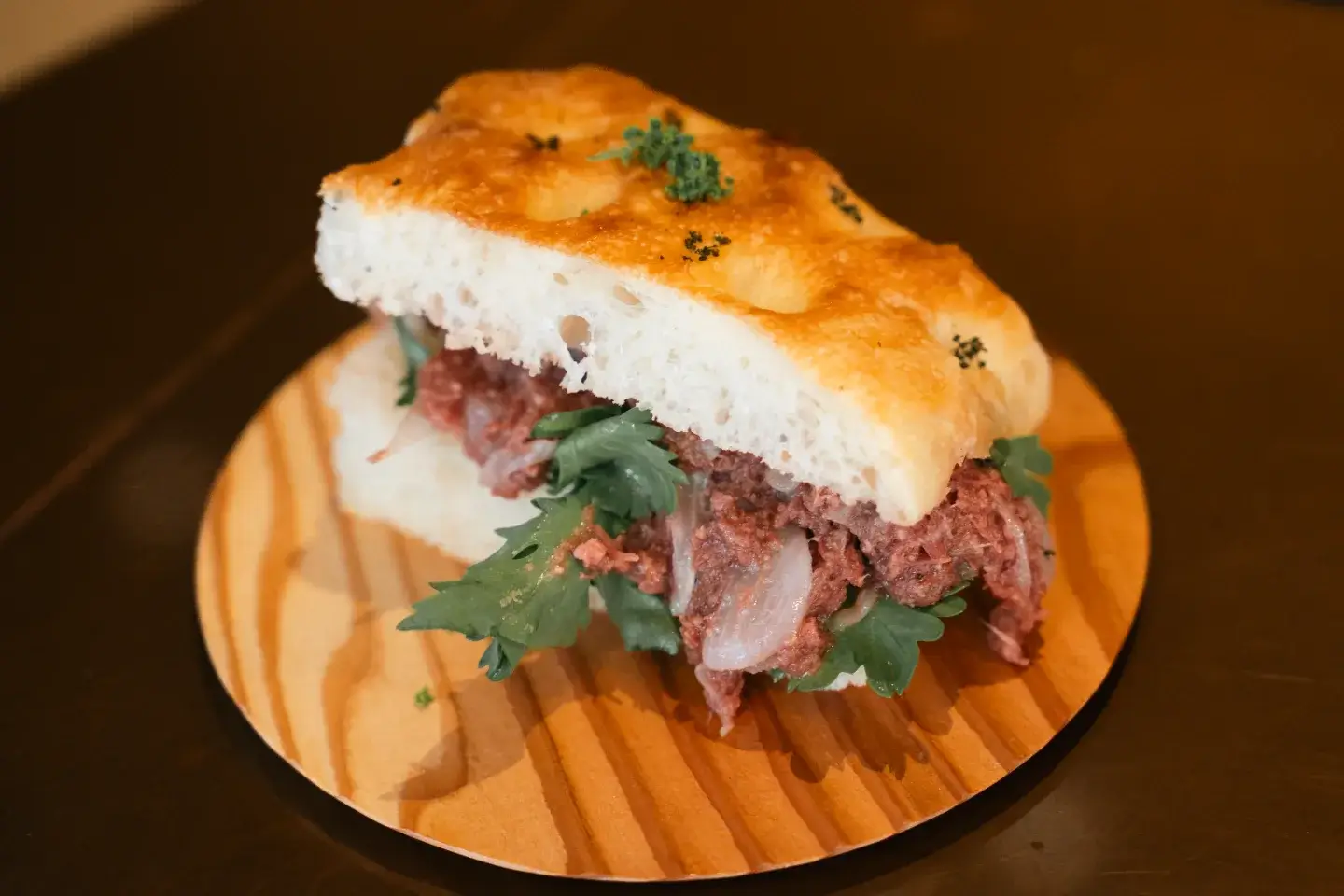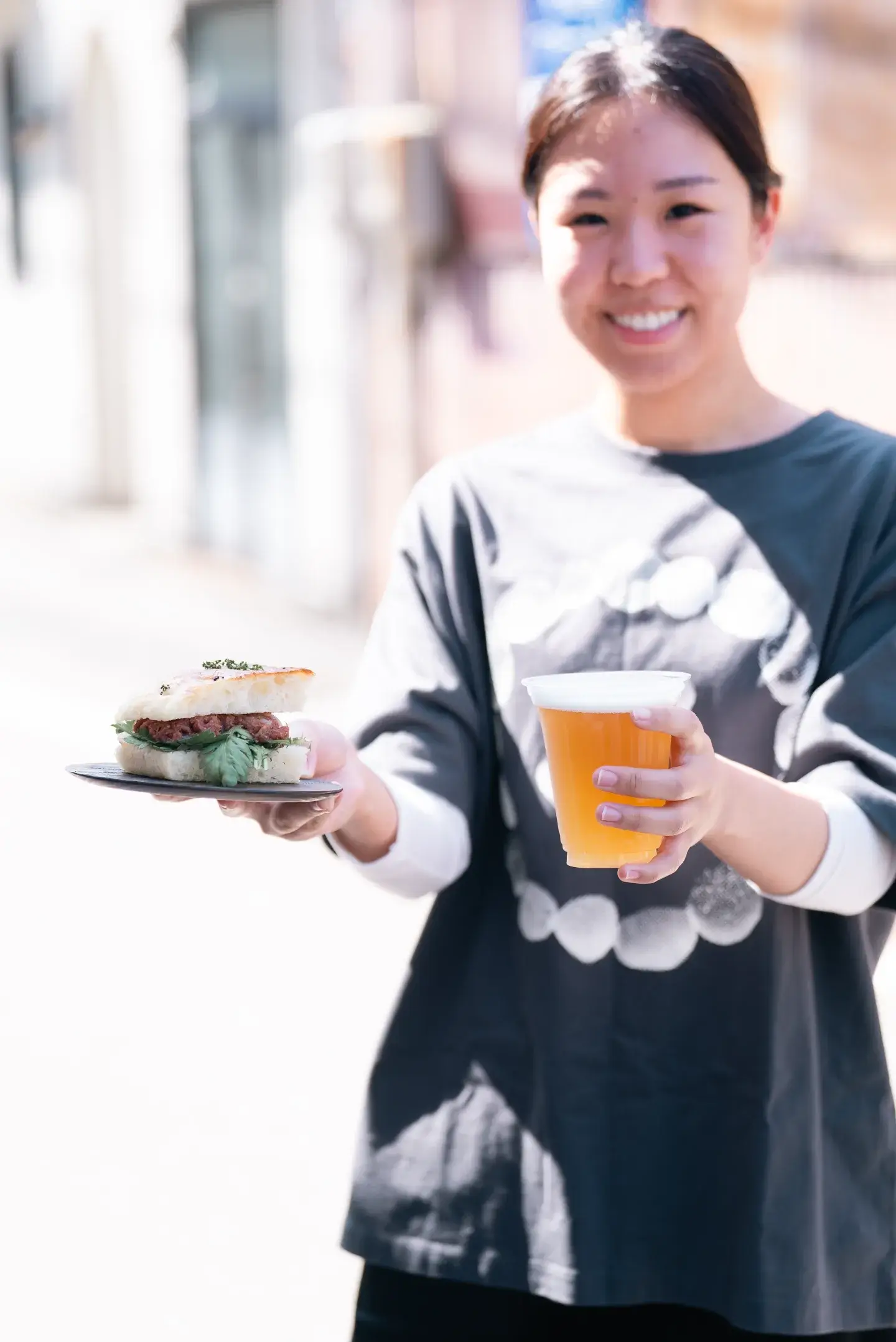 今回お店でも提供しているドーナツを持って行きます。光バナナを練り込んで作ったドーナツは甘さ控えめながら、カリッとモチッとした食感です。 食事系のルーサーバーガー 甘塩っぱい新感覚なハンバーガー。スイーツはドーナツマリトッツォ。生クリームとマスカルポーネを合わせたイタリアスタイルになっております。