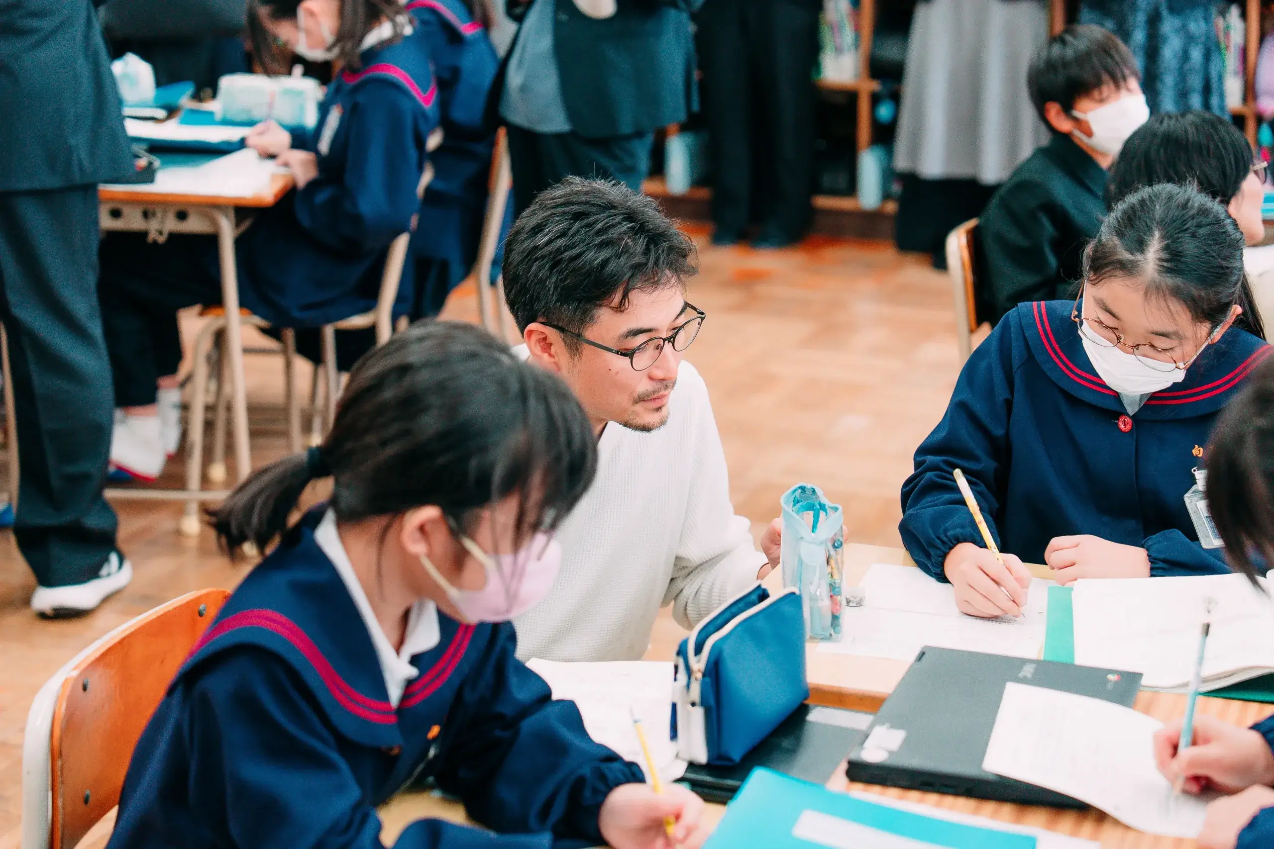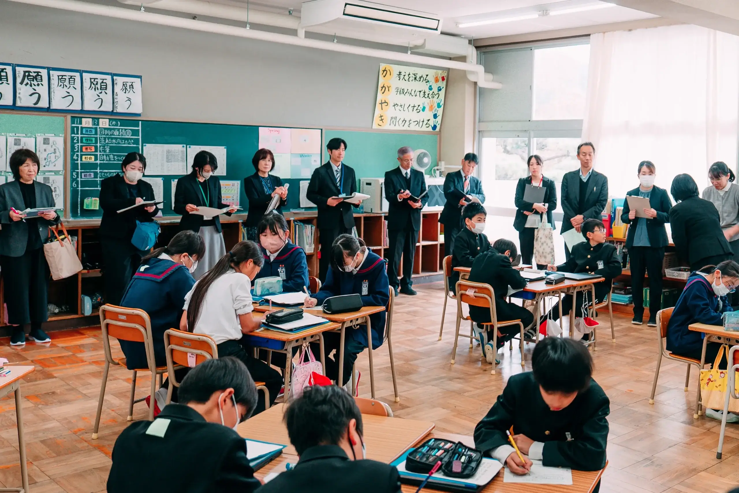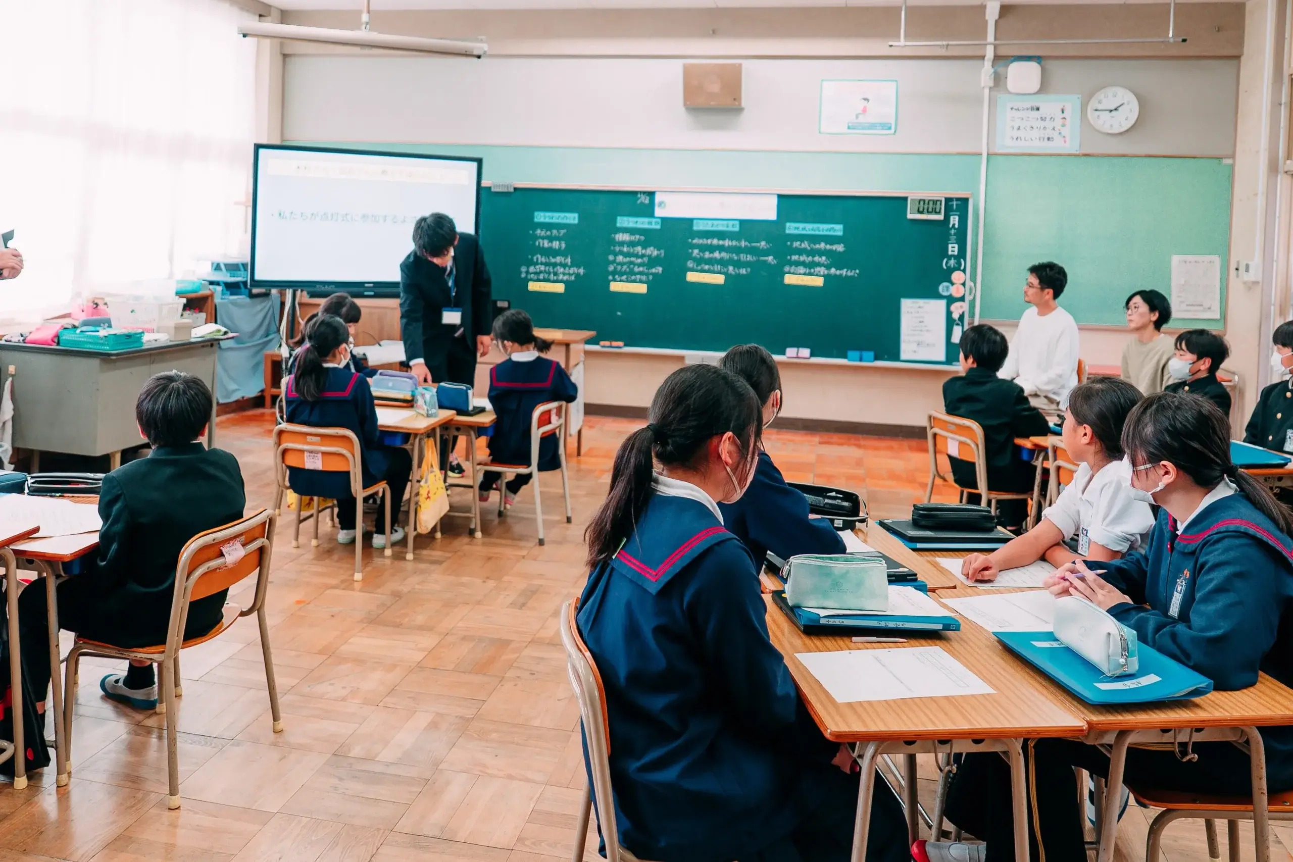 この日の授業は、地域連携教育の研究発表会としても開催され、市内外の小学校の先生方が授業の様子を見学に来られていました。