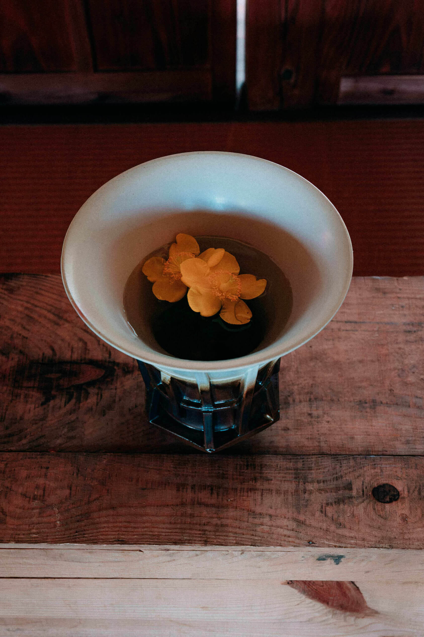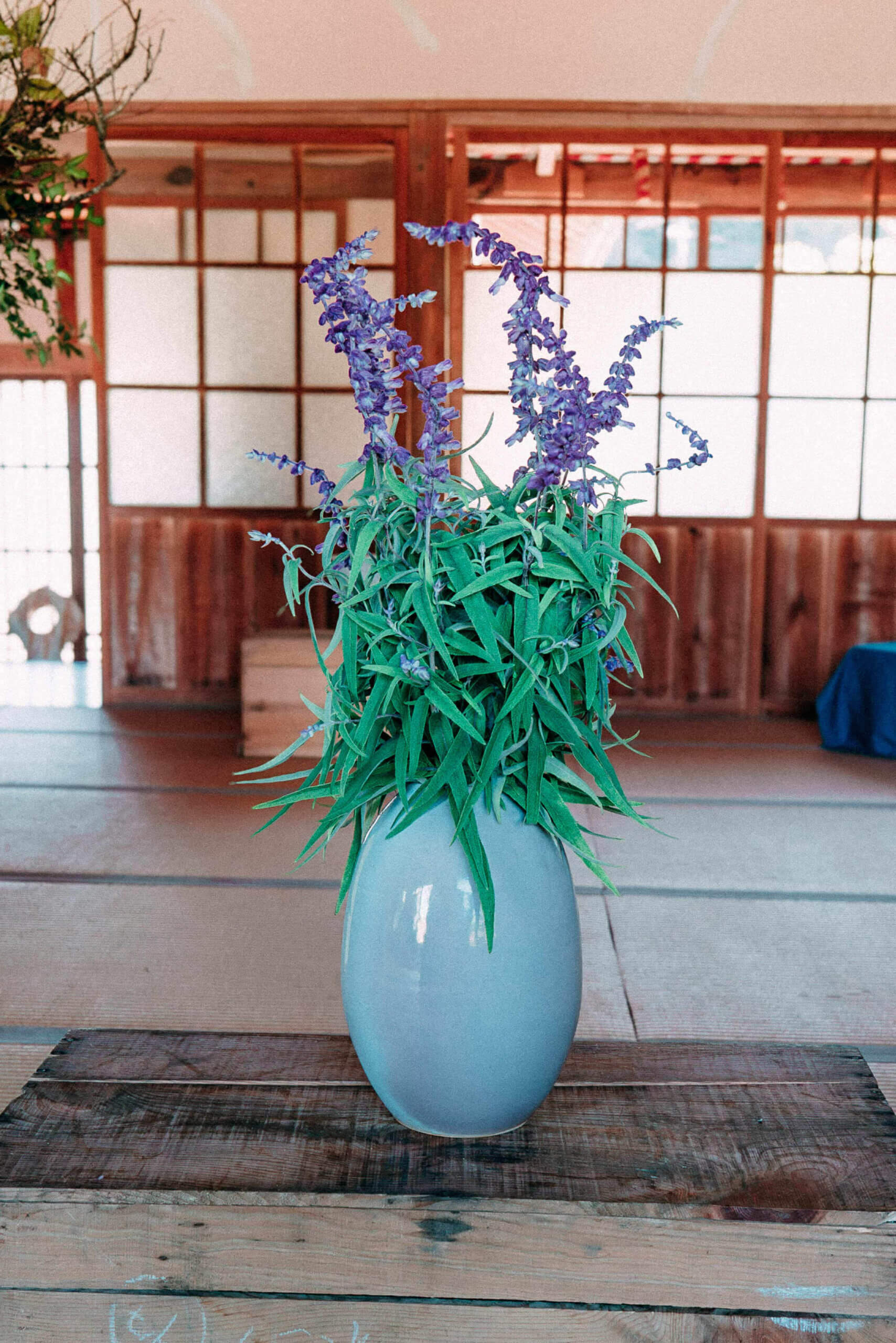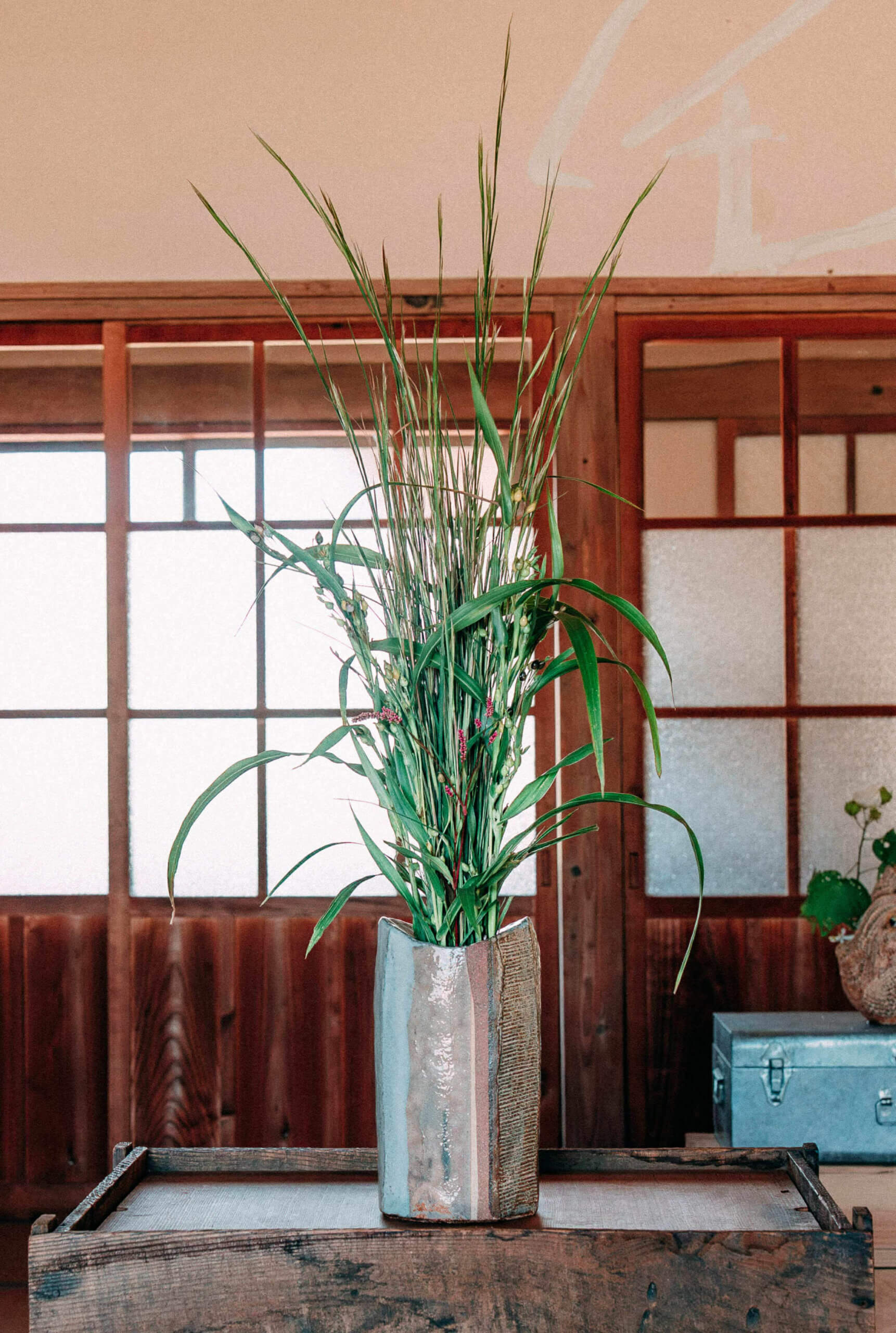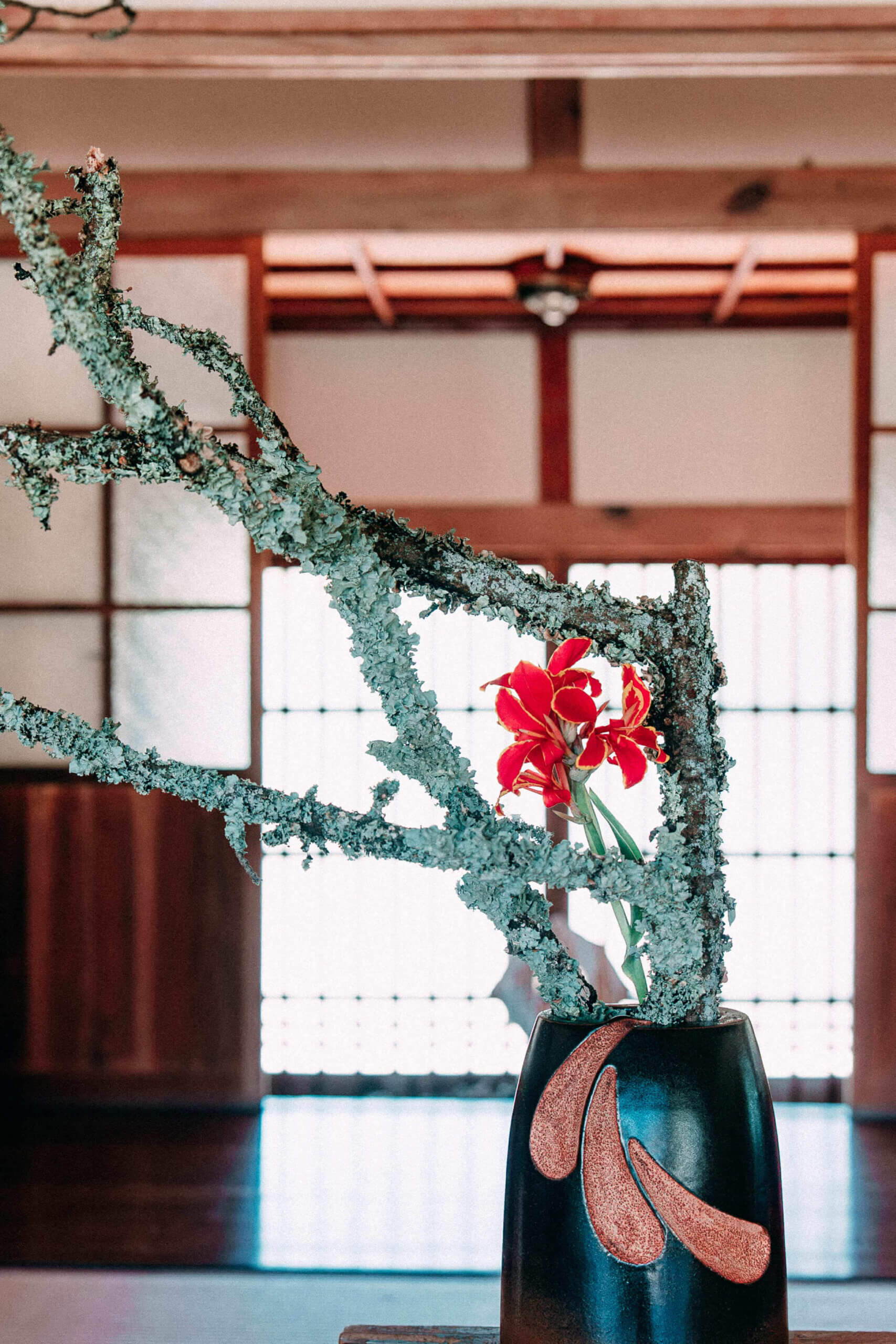 聞こえるのは外からの風と、鳥や虫の声だけ。時間の流れがゆるやかにほどけていくような空間の中で、花と器が静かに呼応していました。