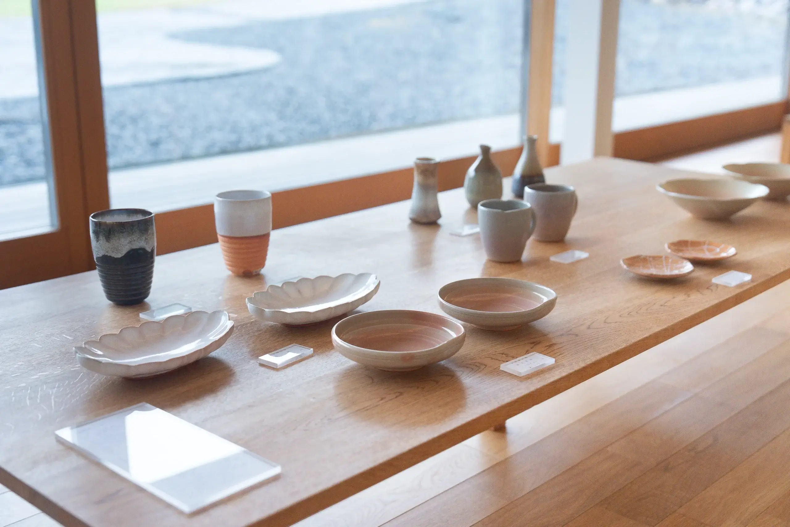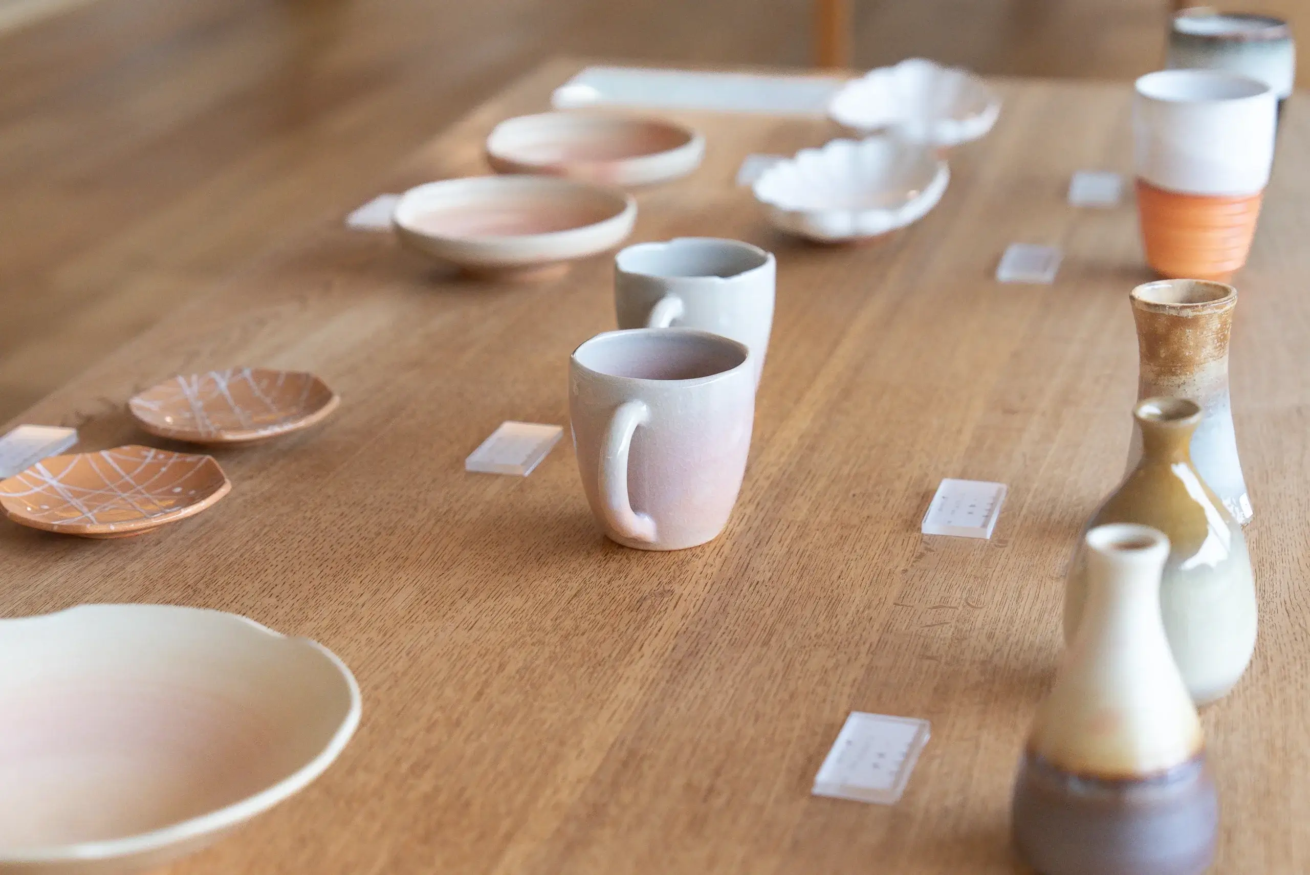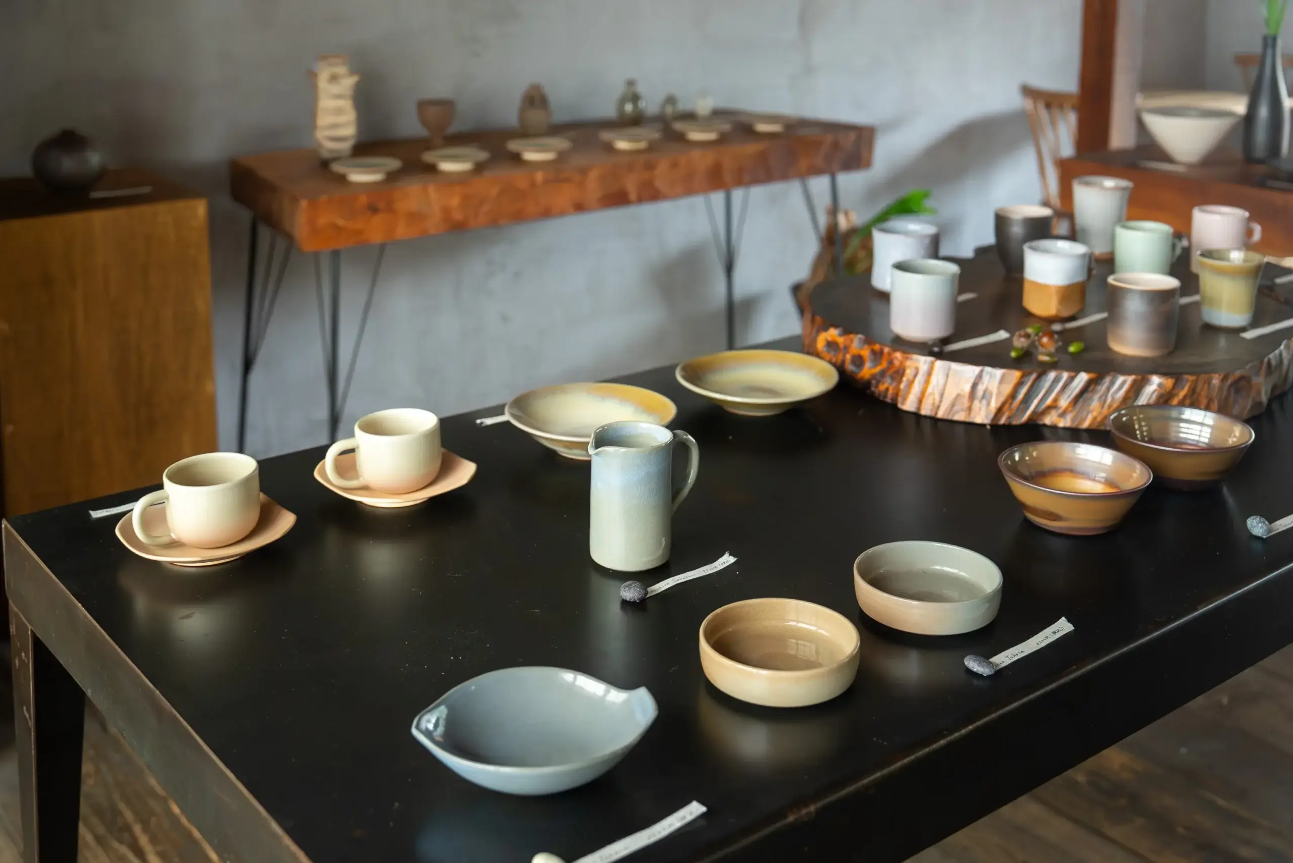 音信川沿いのカフェギャラリーでは、カップやお皿など、より日常に取り入れやすい作品の展示販売が行われています。