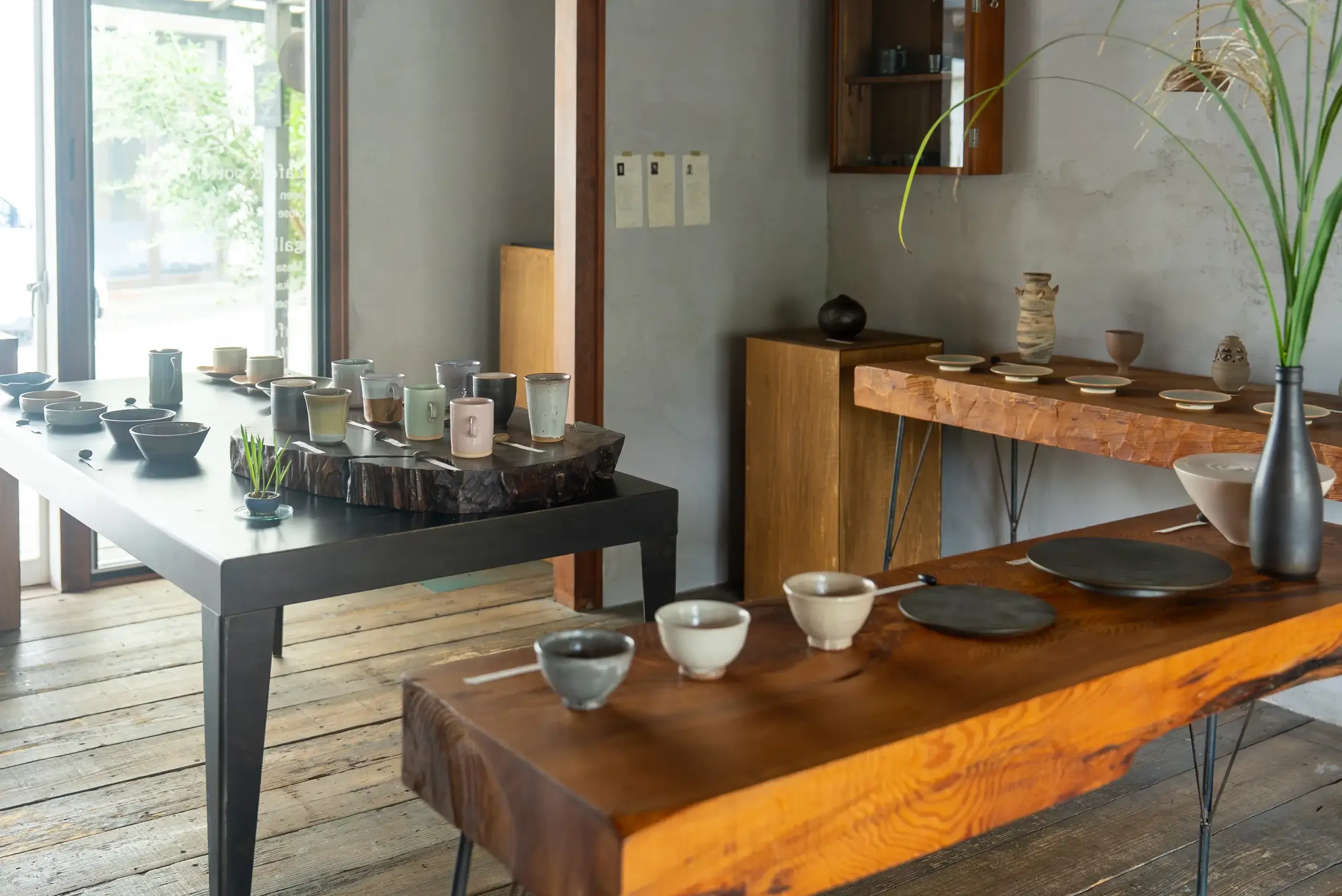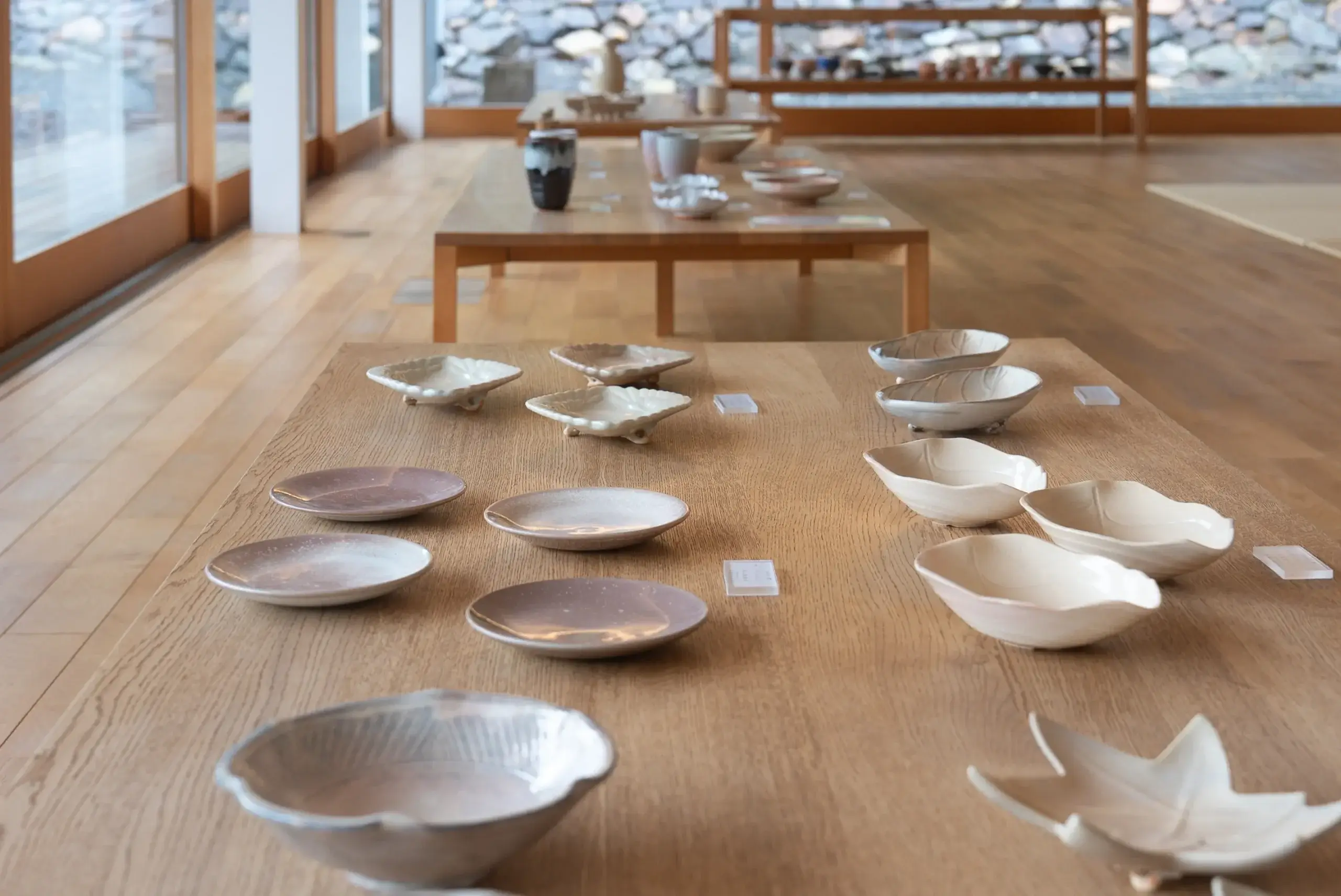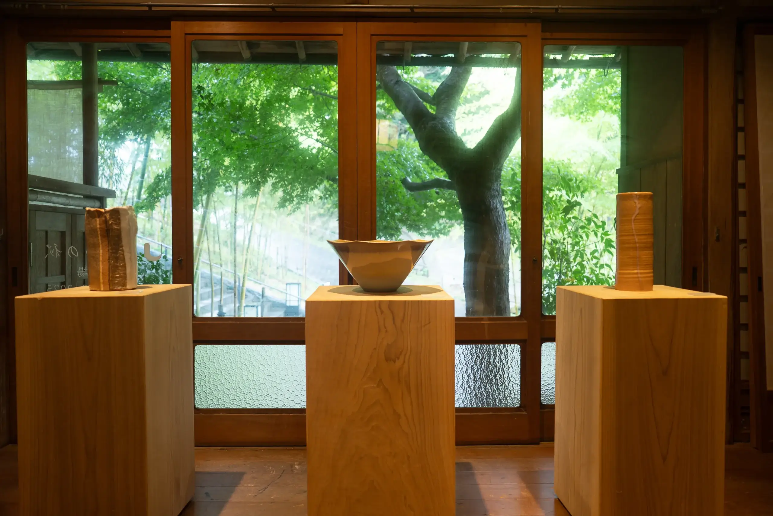 竹林の階段横に佇む古民家ギャラリーでは、茶陶やオブジェ等、より作家性の強い作品が展示されています。