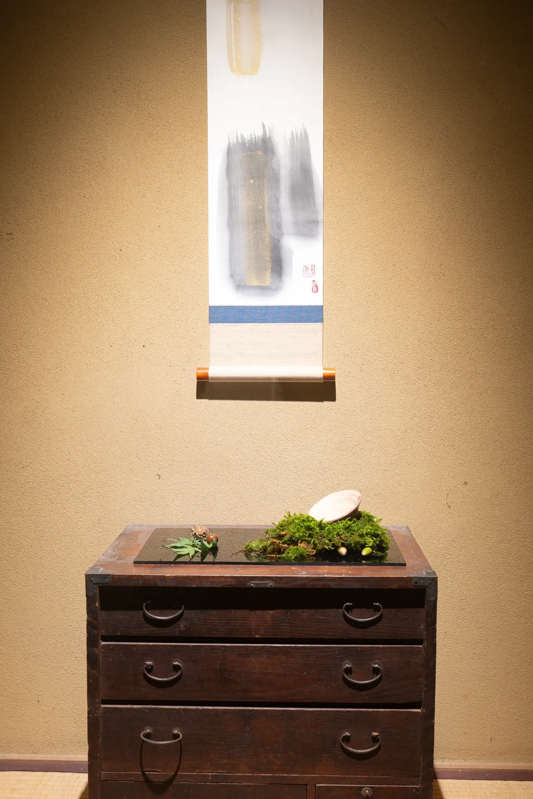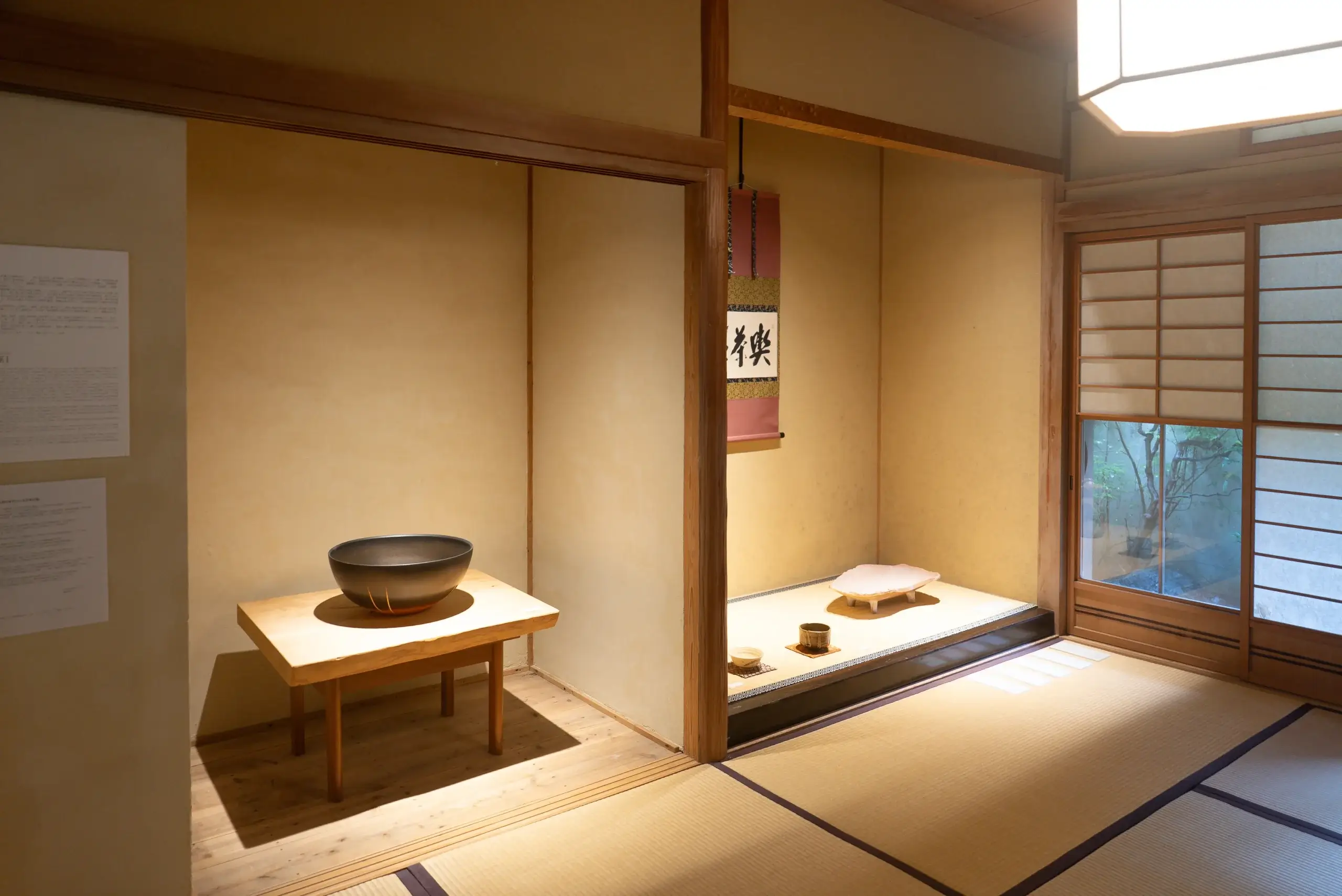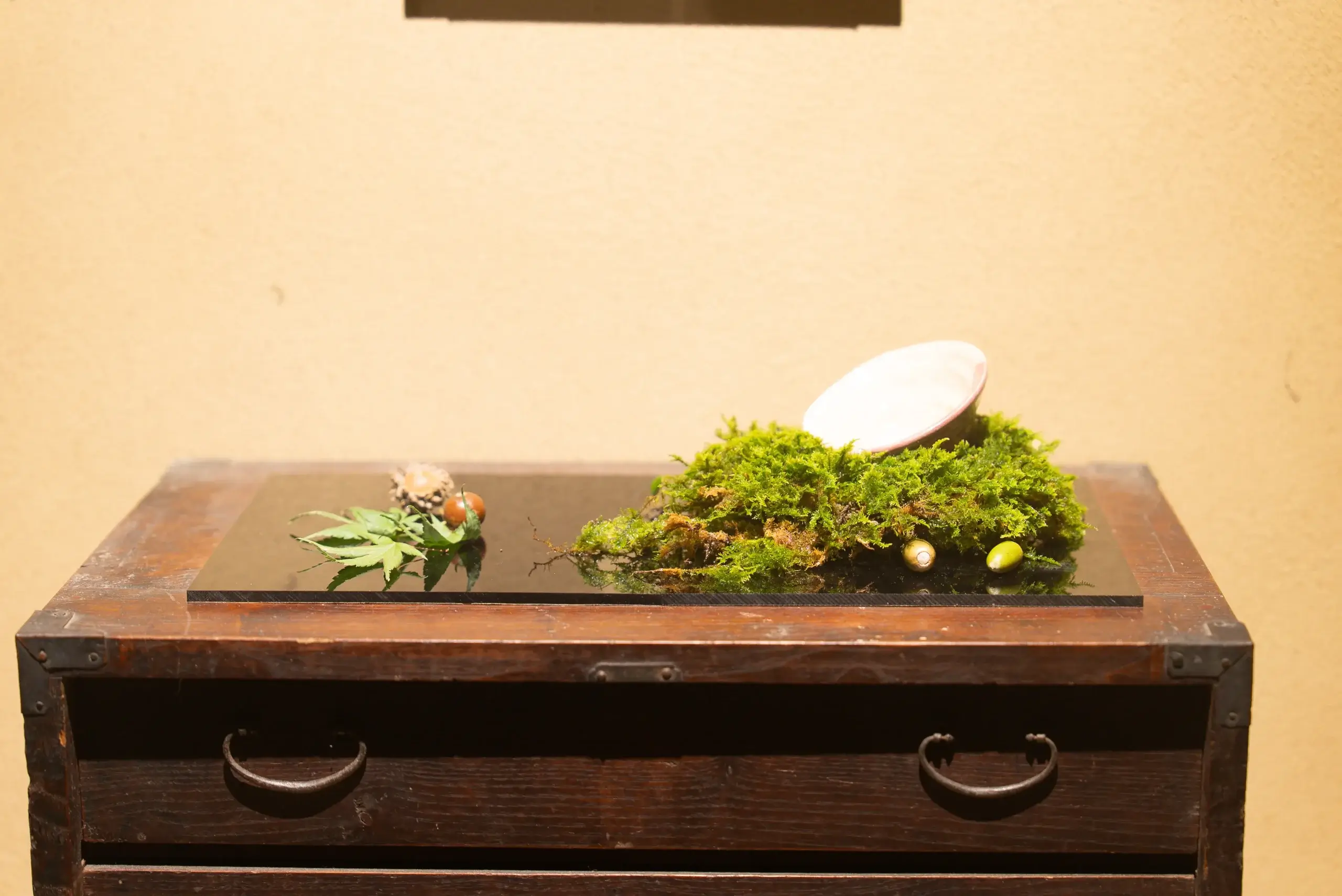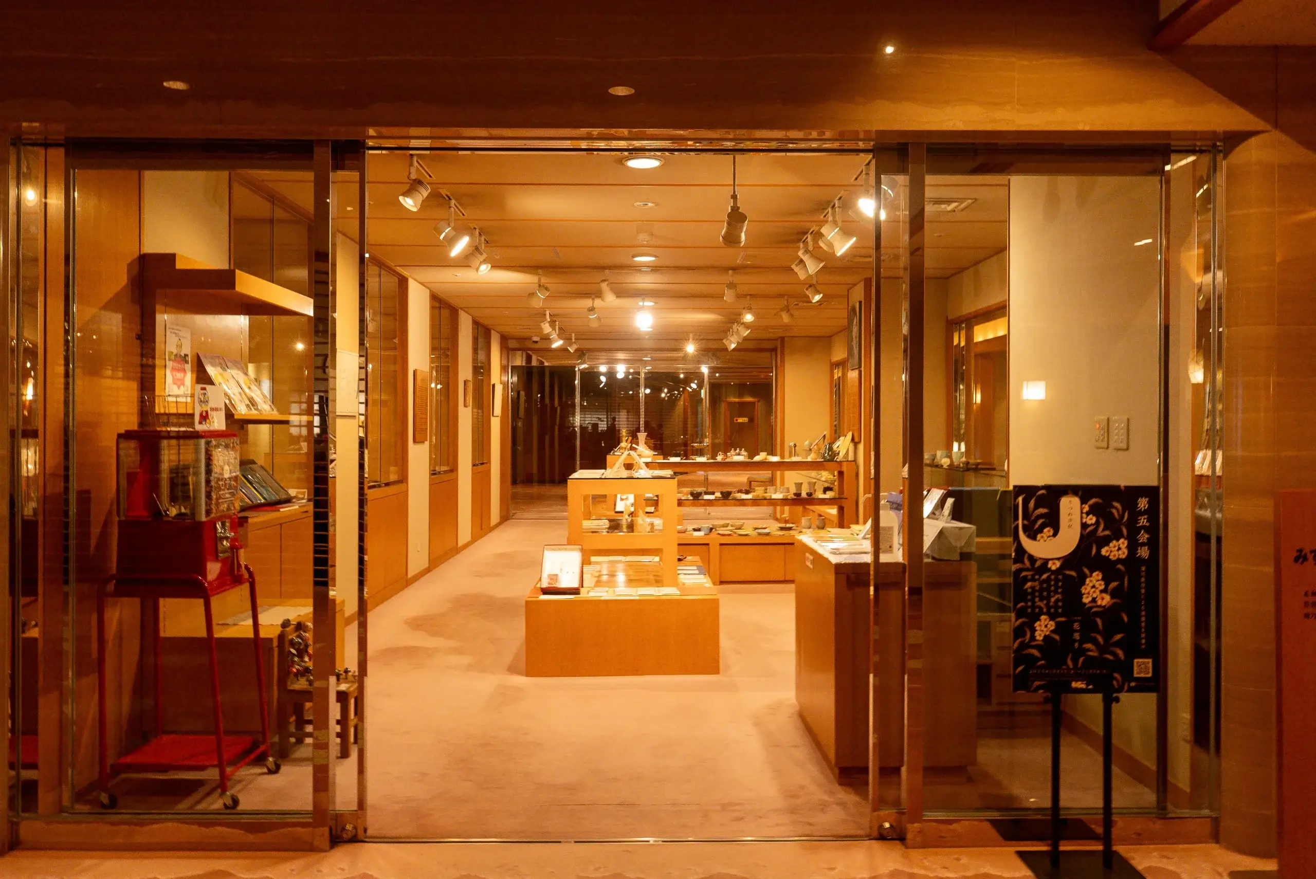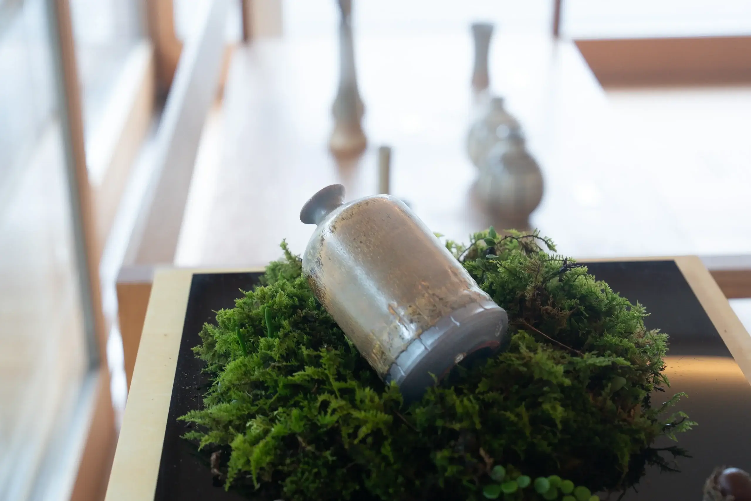 玉仙閣の開放的なロビー空間では、田原崇雄氏によるTシリーズが特別展示されています。日常使いにも最適な、新しいスタイルをご覧いただけます。