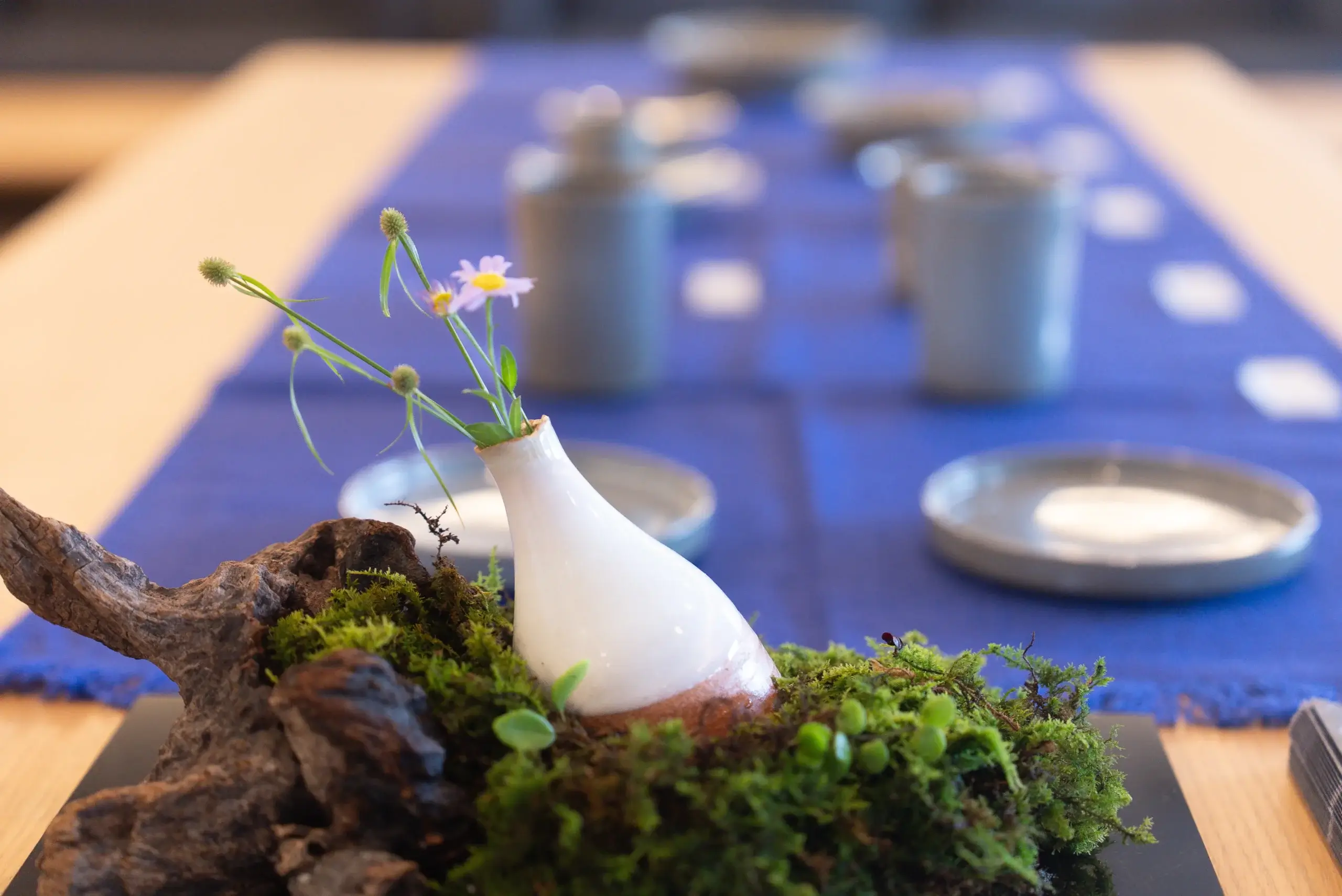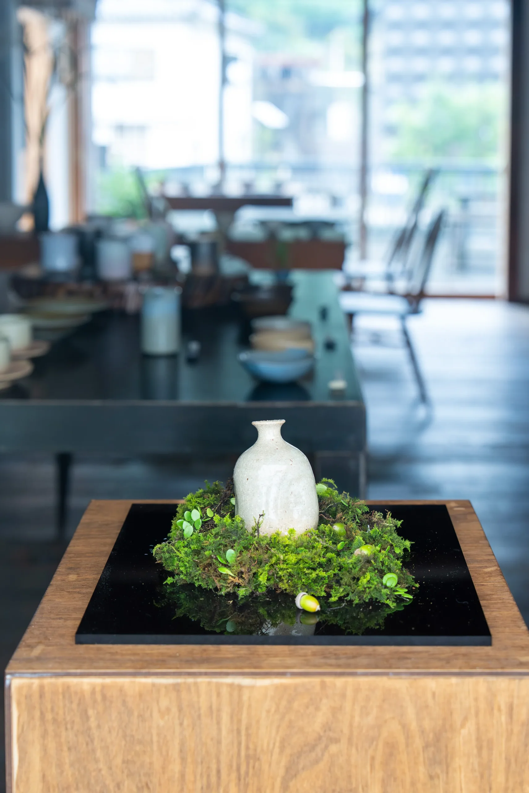 やわらかな光の中で、うつわと花が響き合う長門湯本の秋をお楽しみください。