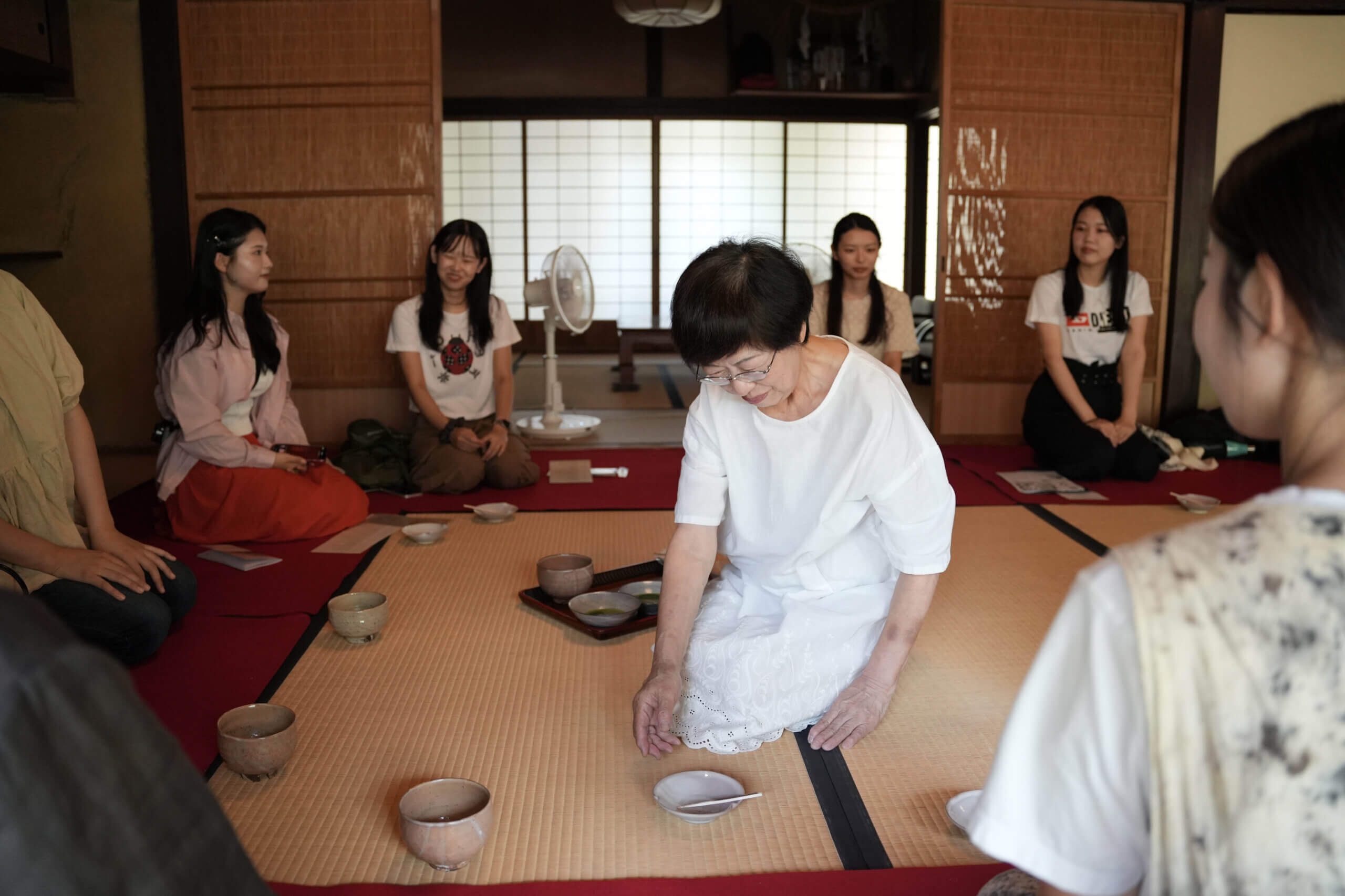 お座敷では同窯の器で点てたお抹茶をいただき、参加者は贅沢なおもてなしに笑顔を見せていました。