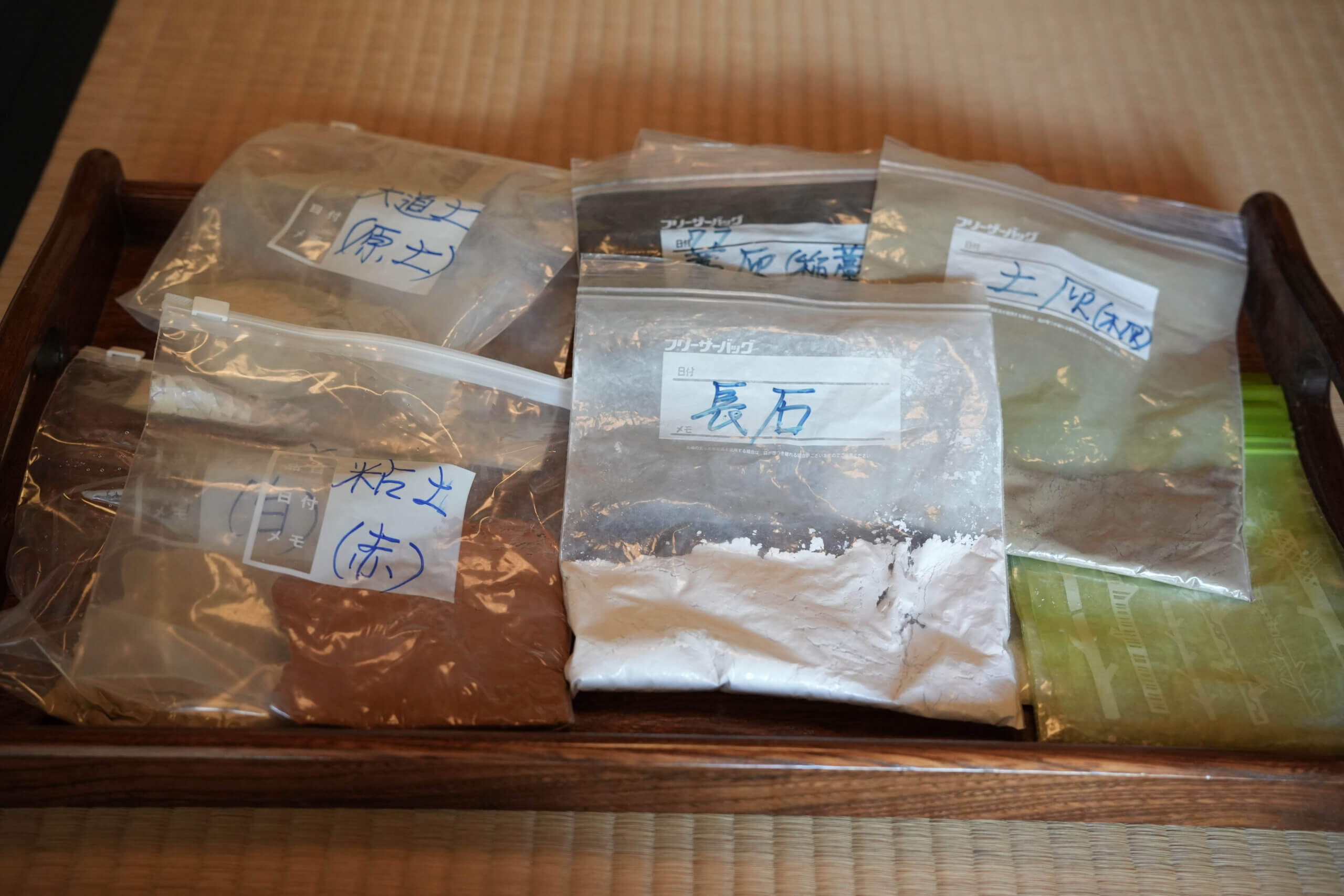 - 萩焼に使われる土は主に3種類。〈大道土(防府市の土)/金峯土(白い土)/見島土(赤土)〉