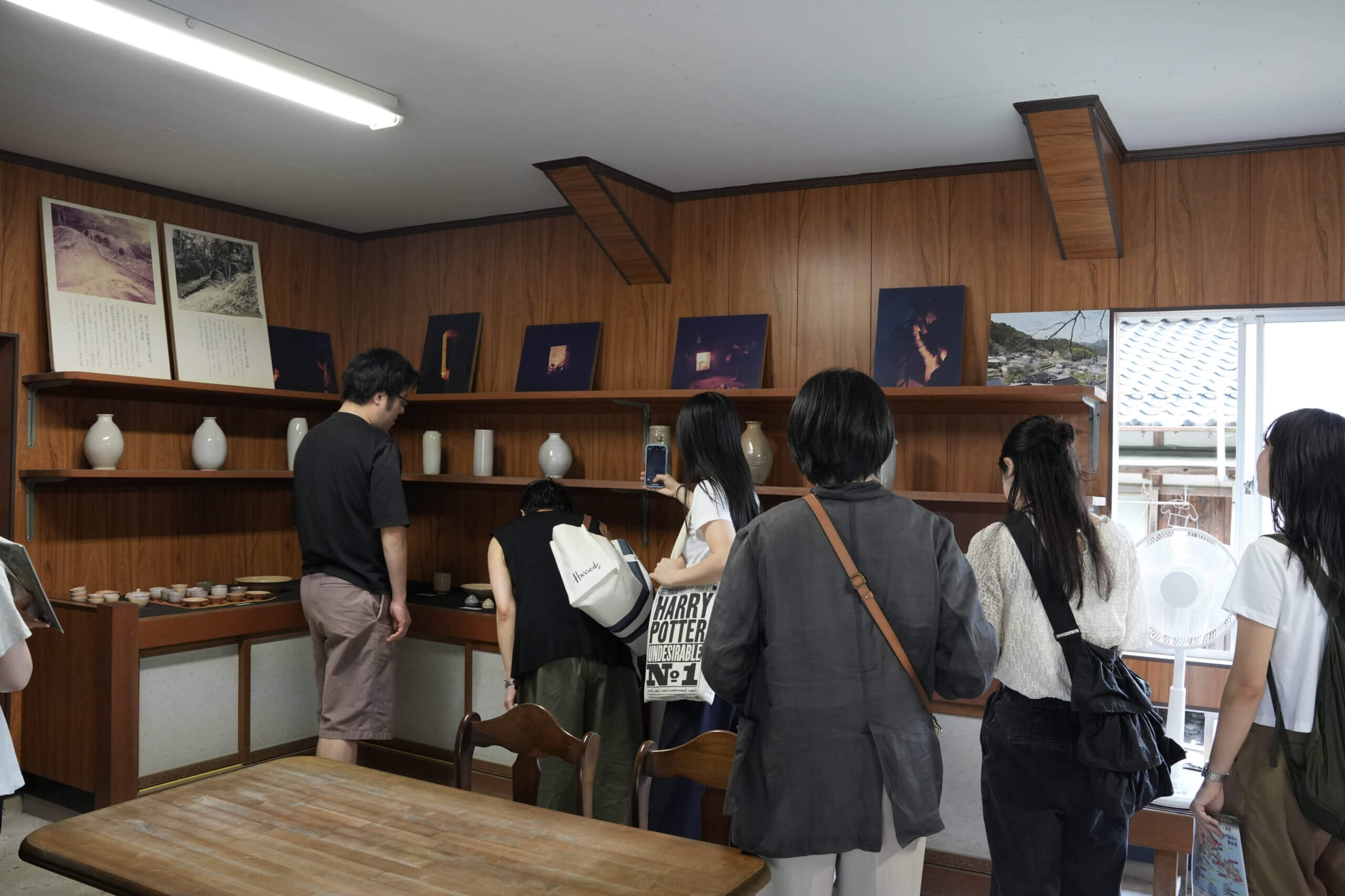 その後、新庄紹弘さんから登り窯の構造や焼成方法、窯の配置によって生まれる「窯変」や「灰被り」といった萩焼特有の表情について詳しい解説をいただきました。