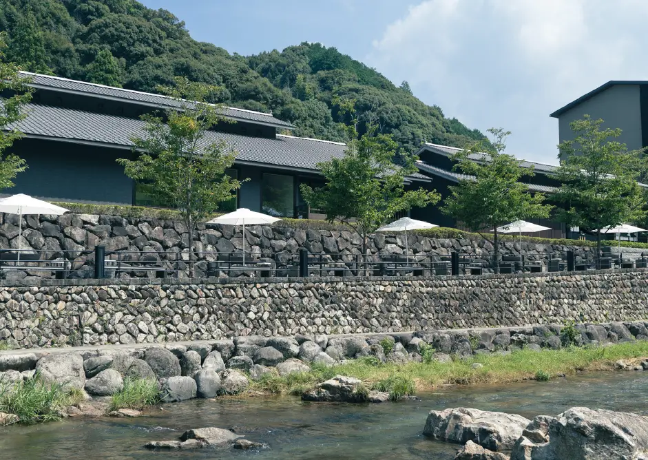 音信川沿いにある星野リゾート 界 長門に併設されたカフェスタンド。
